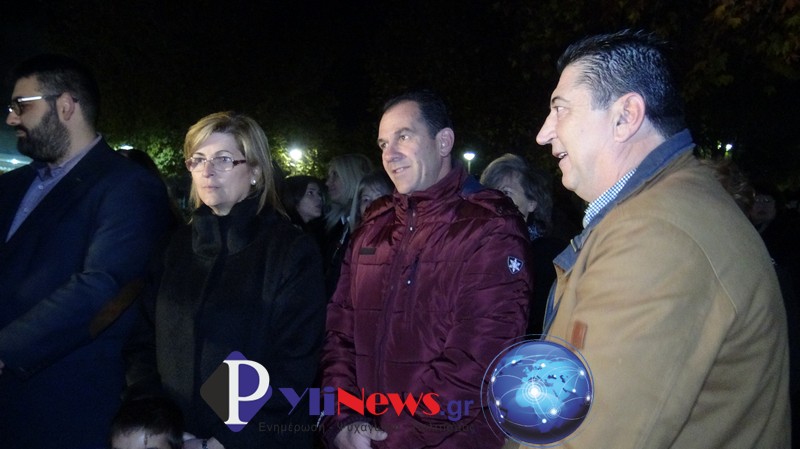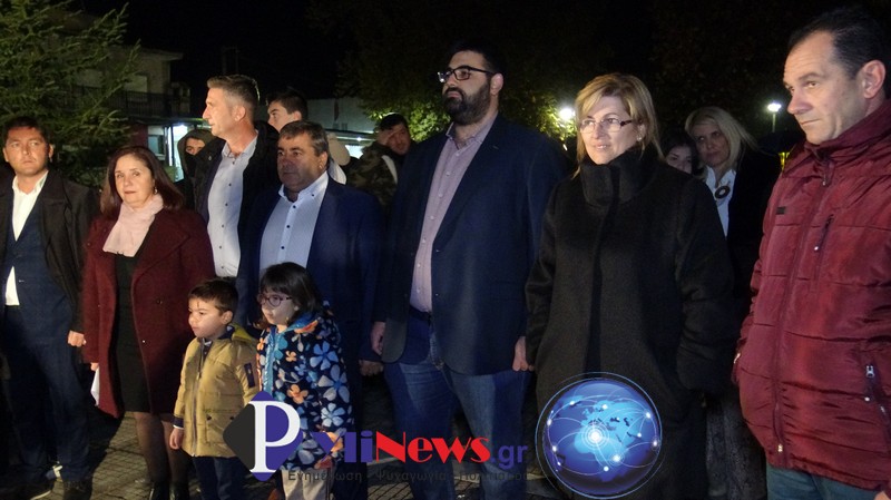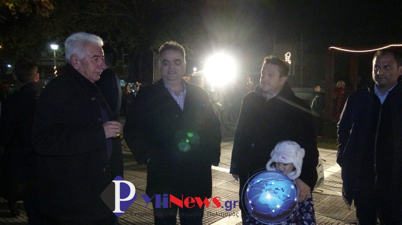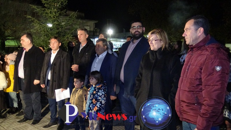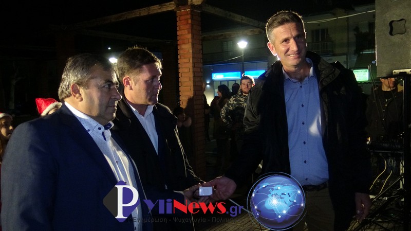 Κατόπιν ο Δήμαρχος με τους Κ. Δούλαλα & Γ. Βρατσίστα, πάτησαν τον διακόπτη για να φωταγωγηθεί το χριστουγεννιάτικο δέντρο, που θα φωτίζει την πλατεία της Φήκης καθ’ όλη την εορταστική περίοδο των Χριστουγέννων.