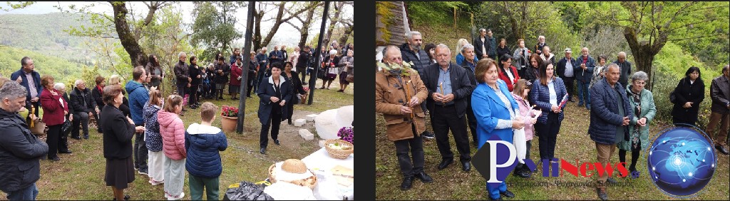 Σε ένα σκηνικό που θυμίζει επίγειο παράδεισο, βουτηγμένο στο πολύχρωμο μωσαϊκό της φύσης με φόντο τον Ίταμο και τον Κόζιακα, η πανηγυρική Θεία Λειτουργία μετ’ αρτοκλασίας τελέστηκε στον αύλειο χώρο από τον π. Αλέξανδρο Ευαγγελάκο. Οι ψαλμωδίες, σε απόλυτη αρμονία με την ηρεμία του τοπίου, ταξίδεψαν πάνω από τη γη των προγόνων μας, συνδέοντας το σήμερα με το ένδοξο παρελθόν των Γόμφων.
