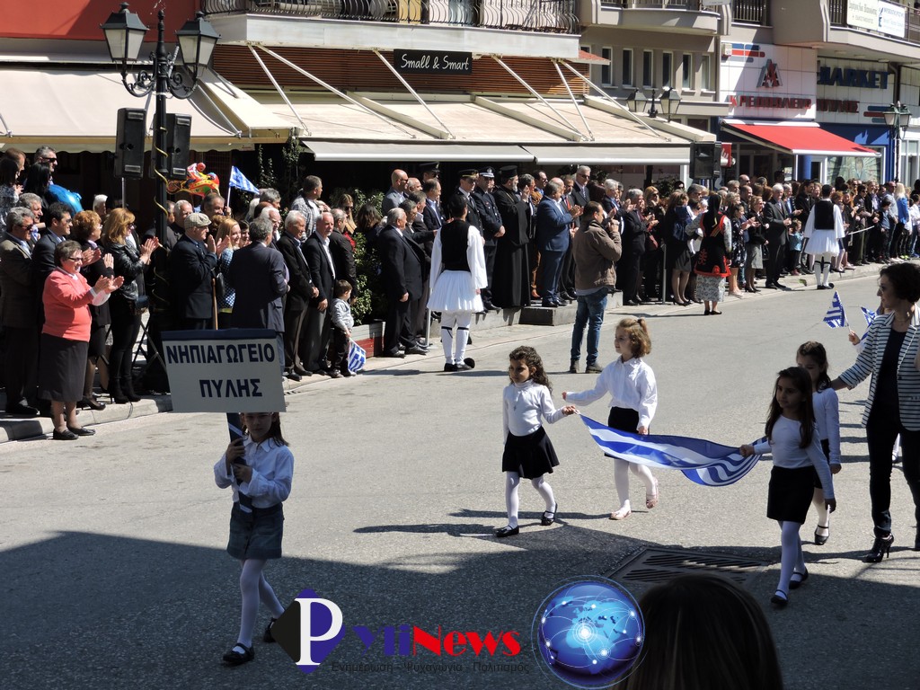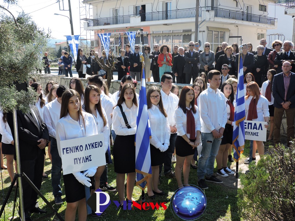 Αρχικά & στον Ι.Ν. του Αγ. Βησσαρίωνα στην Πύλη, ετελέσθη δοξολογία, ενώ κατόπιν & στο “Μνημείο Ηρώων”, στο χώρο του ΕΠΑΛ Πύλης, αναπέμφθη επιμνημόσυνη δέηση, έγινε κατάθεση στεφάνων, τηρήθηκε ενός λεπτού σιγή στη μνήμη των αθάνατων νεκρών & μετά την ανάκρουση του Εθνικού Ύμνου, ακολούθησε η μαθητική παρέλαση με την οποία & έκλεισε ο εορτασμός για την Εθνική μας Επέτειο της 25ης Μαρτίου.