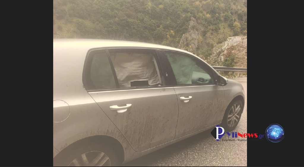 Ευτυχώς όμως και για λίγα εκατοστά, οι πέτρες δεν τραυμάτισαν τους επιβαίνοντας, που δεν κατάλαβαν από πού τους ήρθε κα τι τους χτύπησε.