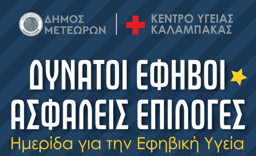 Ο Δήμος Μετεώρων σε συνεργασία με το Κέντρο Υγείας Καλαμπάκας διοργανώνουν ενημερωτική ημερίδα με τίτλο «ΔΥΝΑΤΟΙ ΕΦΗΒΟΙ – ΑΣΦΑΛΕΙΣ ΕΠΙΛΟΓΕΣ», με στόχο την ευαισθητοποίηση γονέων και μαθητών γύρω από σύγχρονες συνήθειες που επηρεάζουν άμεσα την υγεία και την ανάπτυξη των εφήβων.
