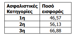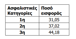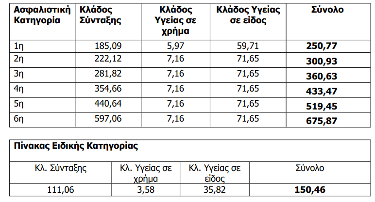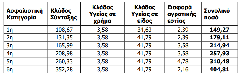 Κατόπιν της ανωτέρω προσαύξησης, τα ποσά των ασφαλιστικών κατηγοριών διαμορφώνονται ως εξής: