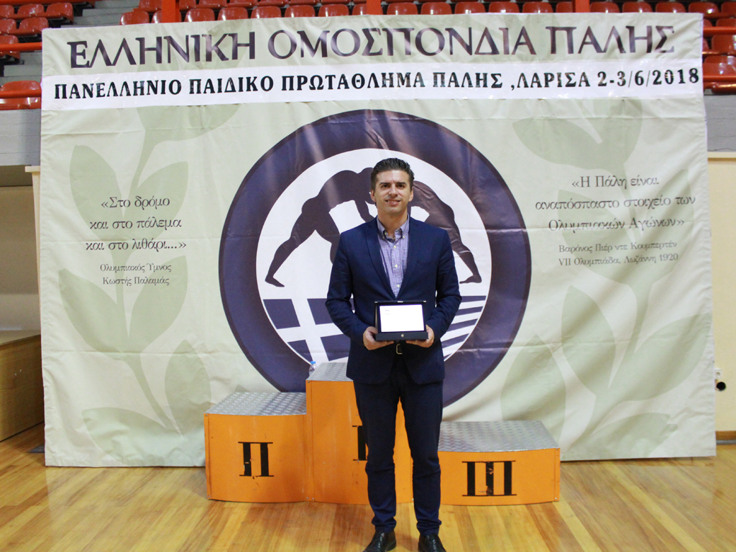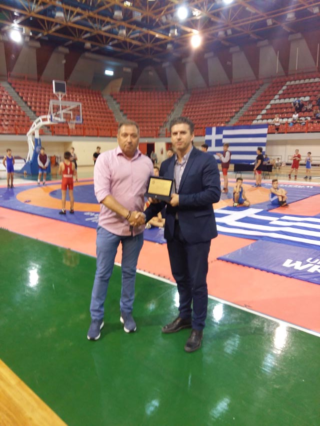Στην έναρξη των αγώνων ο κ. Θανάσης Παιδής βραβεύτηκε από την Ελληνική Ομοσπονδία Πάλης για την πολυετή προσφορά στον χώρο του αθλητισμού και την συμμετοχή του στην διοίκηση της Ελληνικής Ομοσπονδίας