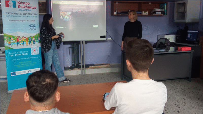 Στο πλαίσιο της συνεχούς και αγαστής συνεργασίας του Κέντρου Κοινότητας Δήμου Πύλης με το Γυμνάσιο Πύλης, έπειτα από έγγραφη πρόσκληση της διευθύντριας, τη Δευτέρα 3 και την Τρίτη 4 Νοεμβρίου 2025, πραγματοποιήθηκε δράση ενημέρωσης και ψυχοκοινωνικής παρέμβασης, στην Α΄ Τάξη Γυμνασίου, με θέμα: «Από το Δημοτικό στο Γυμνάσιο: Νέες Προκλήσεις, Νέοι Κανόνες », από την Ψυχολόγο, κα Σ. Κουβάτα και την Κοινωνική Λειτουργό, κα Ε. Μπλατζή .