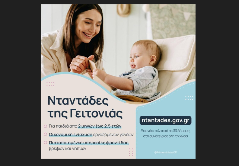 Το έντονο ενδιαφέρον των πολιτών για το πρόγραμμα «Νταντάδες της Γειτονιάς» αποτυπώθηκε από την πρώτη κιόλας ημέρα λειτουργίας της πλατφόρμας, καθώς στο ntantades.gov.gr καταγράφηκαν 13.500 επισκέψεις. Η αυξημένη επισκεψιμότητα επιβεβαιώνει ότι πρόκειται για ένα πρόγραμμα που έρχεται να καλύψει ένα πραγματικό κενό στην καθημερινότητα των οικογενειών, προσφέροντας μια οργανωμένη, ασφαλή και ευέλικτη λύση φροντίδας για βρέφη και νήπια.
