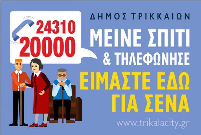 Δ. Τρικκαίων προς ηλικιωμένους: «Μείνε σπίτι – Είμαστε εδώ για σένα»