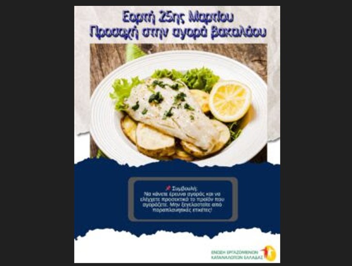 ΕΕΚΕ: Εορτή 25ης Μαρτίου- Μπακαλιάρος ή λίνγκ; Κεντρικό κριτήριο η σχέση ποιότητας – τιμής