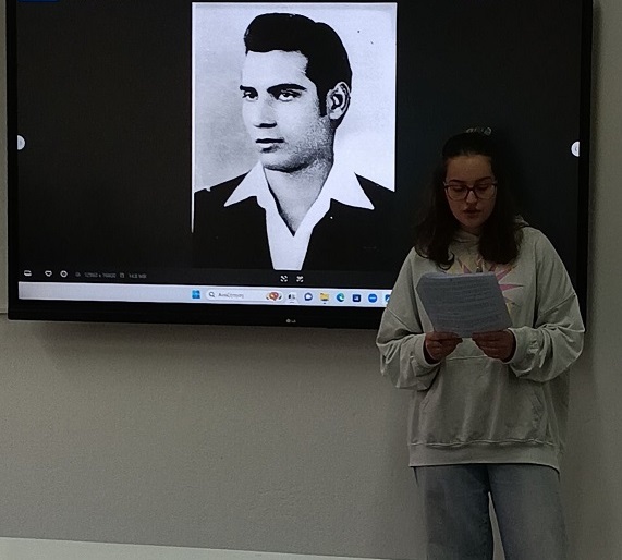 Την 01/04/2026 πραγματοποιήθηκε στο Σχολείο μας εκδήλωση, στο πλαίσιο του εορτασμού της «71ης επετείου από την έναρξη του Εθνικοαπελευθερωτικού Αγώνα των Κυπρίων Αγωνιστών (1955-1959)» και της ημέρας εθνικής επετείου της Κυπριακής Δημοκρατίας, που ήταν αφιερωμένη στον Ευαγόρα Παλληκαρίδη. Στον τελευταίο, αλλά και στον νεότερο σε ηλικία, από τους ήρωες Κύπριους αγωνιστές που δολοφονήθηκε από τους Άγγλους αποικιοκράτες. Όταν τον ανέβασαν στην κρεμάλα ο Ευαγόρας συμπλήρωνε μόλις τα 19 του χρόνια.
