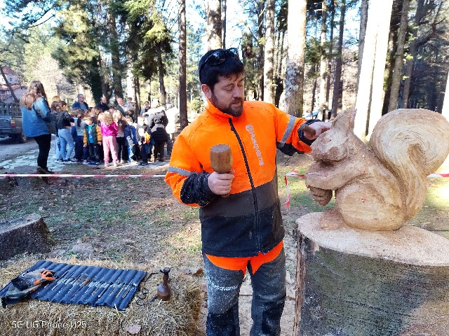 Στη συνέχεια, ο Ξυλογλύπτης Άγγελος Πατσιατζής μίλησε στα παιδιά για την τέχνη της ξυλογλυπτικής, τη δημιουργική διαδικασία και τη μεταμόρφωση του ξύλου σε καλλιτεχνικό έργο. Οι μαθητές ήρθαν σε επαφή με τα εργαλεία, τις τεχνικές και τη φιλοσοφία της χειροποίητης δημιουργίας, κατανοώντας πως η τέχνη μπορεί να γεννηθεί μέσα από τη φύση, με σεβασμό προς αυτήν.