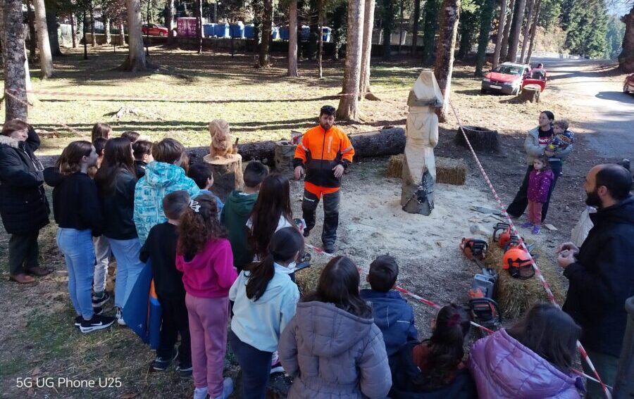 Στη συνέχεια, ο Ξυλογλύπτης Άγγελος Πατσιατζής μίλησε στα παιδιά για την τέχνη της ξυλογλυπτικής, τη δημιουργική διαδικασία και τη μεταμόρφωση του ξύλου σε καλλιτεχνικό έργο. Οι μαθητές ήρθαν σε επαφή με τα εργαλεία, τις τεχνικές και τη φιλοσοφία της χειροποίητης δημιουργίας, κατανοώντας πως η τέχνη μπορεί να γεννηθεί μέσα από τη φύση, με σεβασμό προς αυτήν.