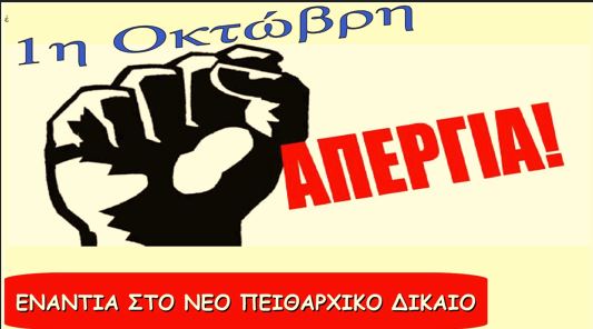 1η Οκτώβρη ΑΠΕΡΓΟΥΜΕ και συμμετέχουμε στη συγκέντρωση στις 10.30πμ στην κεντρική πλατεία