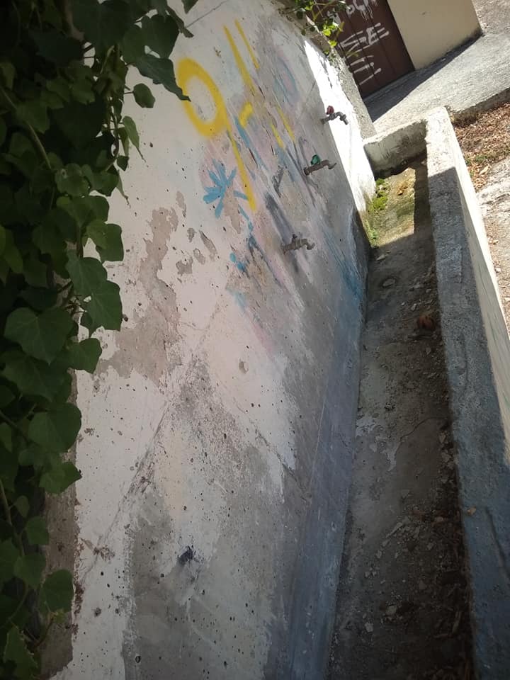 Πέρα από αισθητικής απόψεως, προκύπτει σημαντικό θέμα για την υγιεινή του χώρου.Οι εξωτερικές βρύσες είναι χαλασμένες και μέσα στη βρωμιά. Κάθε σιδερένιο αντικείμενο είναι σκουριασμένο. Το φωτιστικό στην οροφή σπασμένο έτοιμο να πέσει.