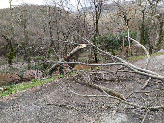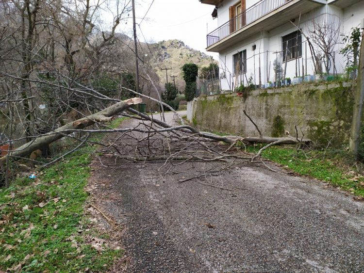 Στην πρώτη περίπτωση, πτώση πλατάνου στην ανατολική είσοδο του χωριού στην θέση “Ματσάδα”, διέκοψε την κυκλοφορία & στα δύο ρεύματα προς τη Φήκη, ενώ στην δεύτερη περίπτωση, παρόμοια πτώση πλατάνου στον οικισμό Παλαιοχώρι, εκτός από την διακοπή ρεύματος που προκάλεσε, προκάλεσε κι εκεί διακοπή της κυκλοφορίας & στα δύο ρεύματα στην κατεύθυνση προς Ξυλοπάροικο.