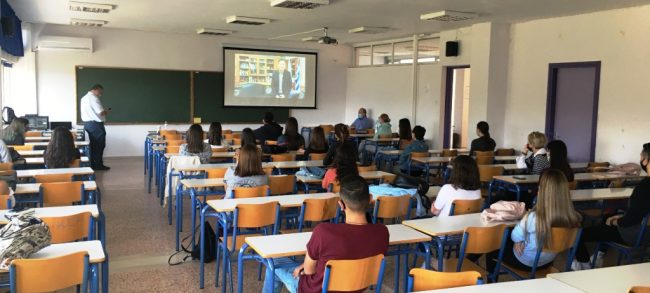 Ο κ. Παπαστεργίου μίλησε στους φοιτητές και τις φοιτήτριες που, τηρώντας όλα τα μέτρα, συγκεντρώθηκαν σε αίθουσα του Ιδρύματος και τόνισε ότι, σε αυτή την «πολύ ιδιαίτερη πόλη, προσέχουμε ιδιαίτερα τη Σχολή».