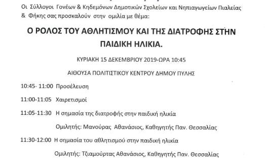 Ημερίδα με θέμα τον αθλητισμό & την διατροφή στην παιδική ηλικία, στο Πολιτιστικό Κέντρο Πύλης