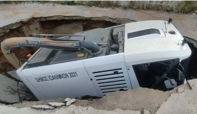 Ιωάννινα: Ο δρόμος «κατάπιε» όχημα του Δήμου – Μεγάλα προβλήματα από καθιζήσεις