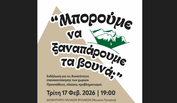 «Μπορούμε να ξαναπάρουμε τα βουνά;». Το μέλλον των χωριών, σε κάμπο και βουνά, αλλά και γενικότερα η πορεία της υπαίθρου, συζητείται σε εκδήλωση που διοργανώνει η ΚοινΣΕπ «ΤόΠΟΙ».