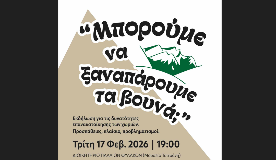 Η εκδήλωση πραγματοποιείται την Τρίτη 17 Φεβρουαρίου 2026, στο διοικητήριο των παλιών Φυλακών (έναντι Μουσείου Τσιτσάνη, στις 19:00).