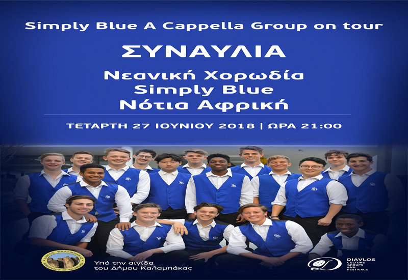 Πρόκειται για τη χορωδία από τη Ν. Αφρική «Simply Blue» που αποτελείται από φοιτητές, οι οποίοι θα τραγουδήσουν τόσο στα αγγλικά, όσο και στα ελληνικά.