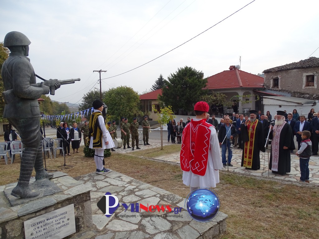 Μετά την τέλεση της Θείας Λειτουργίας, στον Ι.Ν. Αγ. Γεωργίου & στον χώρο του μνημείου του πεσόντος, Βασ. Τσιαβαλιάρη, ετελέσθη, υπό του Αρχ/κού Επιτρόπου Πύλης π. Δημ. Κατασαρού, συνεπικουρούντος του π. Φ. Κωτούλα επιμνημόσυνη δέηση, για να ακολούθησαν σύντομοι χαιρετισμοί των επισήμων & η Παρουσίαση του 1ου Πολεμικού Ανακοινωθέντος Έπους 28ης Οκτωβρίου 1940.