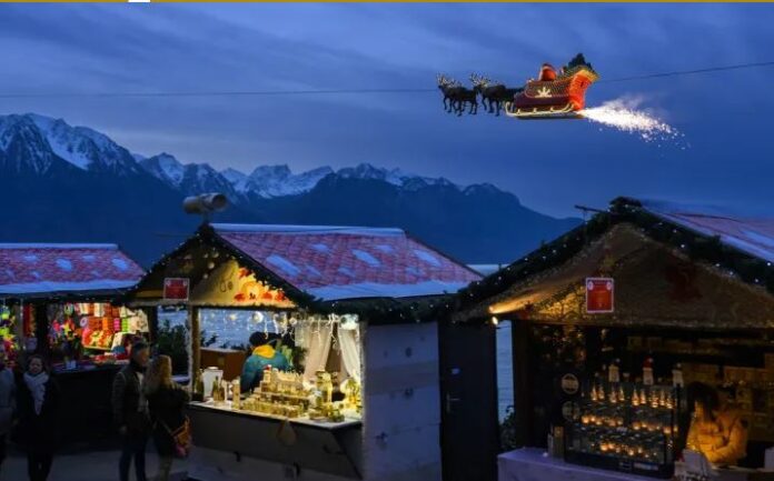 Η φωτό από την χριστουγεννιάτικη αγορά στο Μοντρέ, στο καντόνι Βω της Ελβετίας, η οποία το 2023 προσέλκυσε περίπου 500.000 επισκέπτες μεταξύ 23 Νοεμβρίου και 24 Δεκεμβρίου. Οι διοργανωτές υπήρξαν αρκετά ενθουσιασμένοι με αυτό το θετικό αποτέλεσμα, όπως ανακοίνωσαν, με την ελκυστικότητα της Χριστουγεννιάτικης Αγοράς του Μοντρέ να αφορά ένα ποικιλόμορφο κοινό», όπως είχε δηλώσει και ο Yves Cornaro, Διευθυντής της Χριστουγεννιάτικης Αγοράς του Μοντρέ.