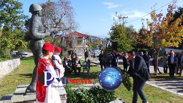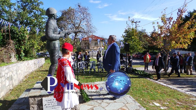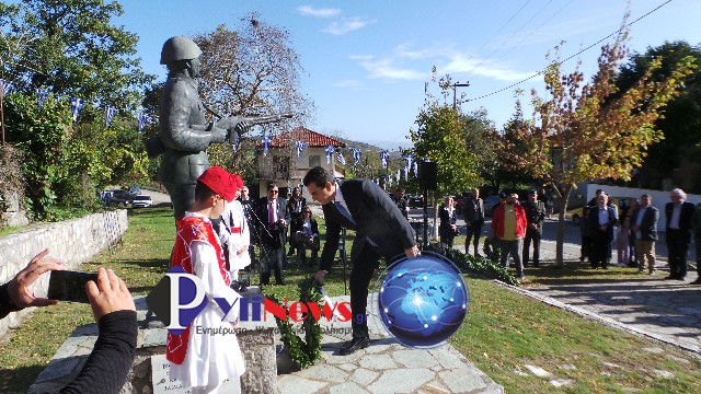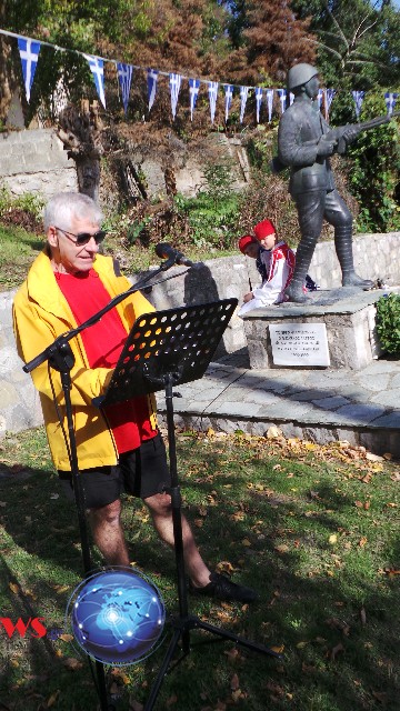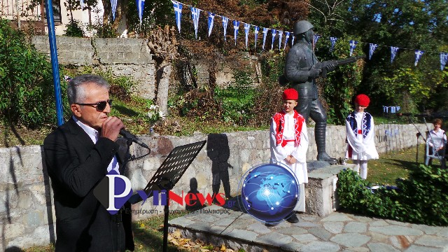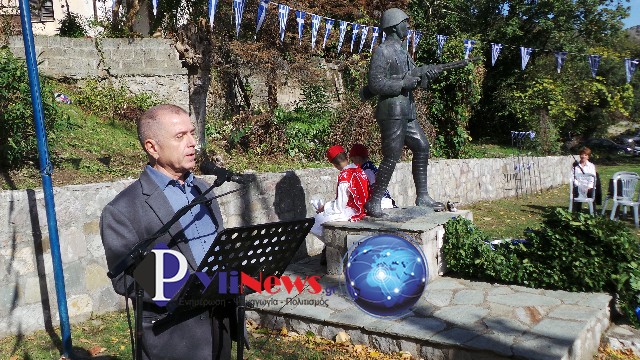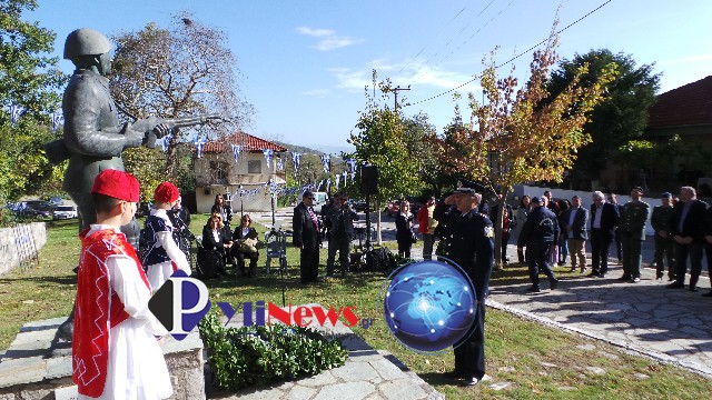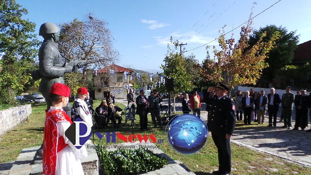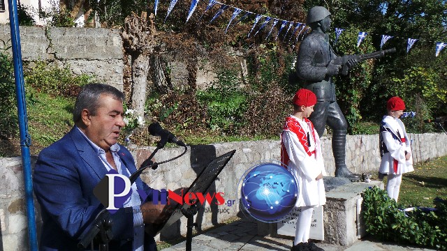 Μετά την τέλεση της Θείας Λειτουργίας, στον Ι.Ν. Αγ. Γεωργίου, ιερουργούντος του π. Αλεξ. Αγγελόπουλου & στον χώρο του μνημείου του πεσόντος, Βασ. Τσιαβαλιάρη, ετελέσθη, επιμνημόσυνη δέηση, για να ακολούθησαν σύντομοι χαιρετισμοί των επισήμων & η Παρουσίαση του 1ου Πολεμικού Ανακοινωθέντος Έπους 28ης Οκτωβρίου 1940.