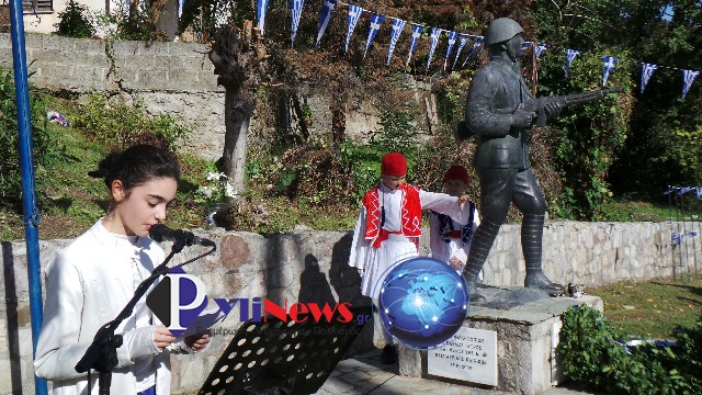 Κατόπιν αυτών, έγινε παρουσίαση του πρώτου πολεμικού ανακοινωθέντος του Έπους της 28ης Οκτωβρίου 1940, ανεγνώσθη το “Προσκλητήριο” πεσόντων, έγινε κατάθεση στεφάνων, απαγγελία ποιημάτων από μαθητές του Δημ. Σχολείου Πιαλείας , η χορωδία του Συλλόγου Γυναικών Παλαιομοναστήρου, υπό την Δ/νση του μαέστρου κ. Δημ. Σκότη τραγούδησε τραγούδια με αναφορά στο έπος του 40, ‘για να κλείσει η όλη εκδήλωση με την ανάκρουση του Εθνικού μας Ύμνου.