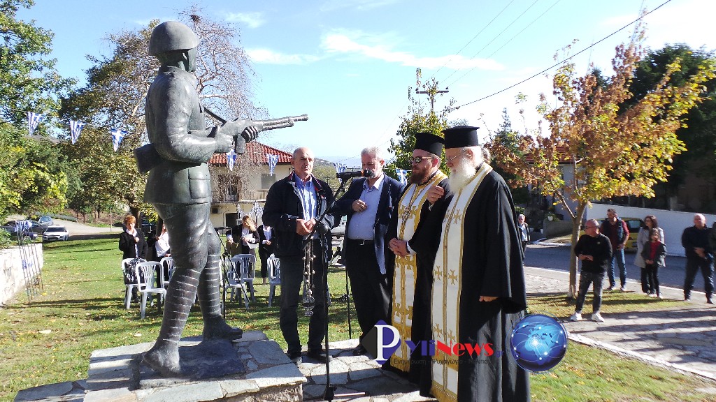 Μετά την τέλεση της Θείας Λειτουργίας, στον Ι.Ν. Αγ. Γεωργίου, ιερουργούντος του π. Αλεξ. Αγγελόπουλου & στον χώρο του μνημείου του πεσόντος, Βασ. Τσιαβαλιάρη, ετελέσθη, επιμνημόσυνη δέηση, για να ακολούθησαν σύντομοι χαιρετισμοί των επισήμων & η Παρουσίαση του 1ου Πολεμικού Ανακοινωθέντος Έπους 28ης Οκτωβρίου 1940.
