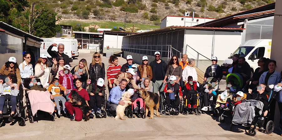 Σε μια διαφορετική επίσκεψη που συγκίνησε και δίδαξε πολλά, παιδιά με κινητικές δυσκολίες από το Ειδικό Δημοτικό Σχολείο Αιγάλεω βρέθηκαν σήμερα στο Διαδημοτικό Κέντρο Περίθαλψης Αδέσποτων Ζώων (ΔΙΚΕΠΑΖ), για να γνωρίσουν από κοντά και να προσφέρουν ένα χάδι στους αδέσποτους σκύλους που φιλοξενούνται εκεί.