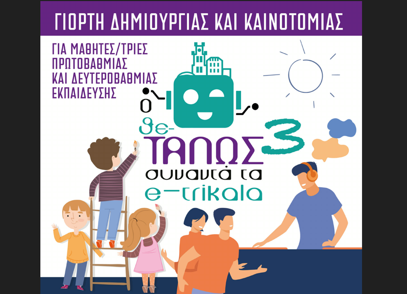 Οι Διευθύνσεις Πρωτοβάθμιας και Δευτεροβάθμιας Εκπαίδευσης Τρικάλων, ενημερώνουν ότι η Γιορτή δημιουργίας και ψηφιακών δεξιοτήτων για μαθητές/τριες Πρωτοβάθμιας και Δευτεροβάθμιας Εκπαίδευσης «Ο Θε-ΤΑΛΩΣ συναντά τα e-trikala3», η οποία είχε προγραμματιστεί να πραγματοποιηθεί τον Μάρτιο και αναβλήθηκε λόγω καιρικών συνθηκών, αποφασίστηκε να πραγματοποιηθεί την Τρίτη 5 Μαΐου 2026 (Πρωτοβάθμια Εκπαίδευση) και την Τετάρτη 6 Μάϊου 2026 (Δευτεροβάθμια Εκπαίδευση).