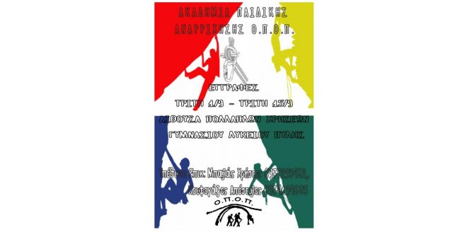 Ο Ορειβατικός Περιηγητικός Όμιλος Πύλης ανακοινώνει την έναρξη της λειτουργίας της παιδικής ακαδημίας αναρρίχησης για τη σεζόν 2020-2021.