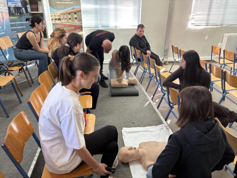 Η αρχή του προγράμματος έγινε στο ΕΠΑΛ Καλαμπάκας, όπου οι μαθητές της Γ’ Λυκείου είχαν την ευκαιρία να εκπαιδευτούν και να ενημερωθούν από πιστοποιημένους εκπαιδευτές σχετικά με βασικές δεξιότητες πρώτων βοηθειών και χρήσιμες πληροφορίες για την αντιμετώπιση έκτακτων περιστατικών.