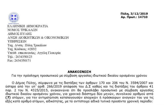 Ξεκινά η Γ’ φάση προσλήψεων 2μηνης απασχόλησης στον Δ. Πύλης