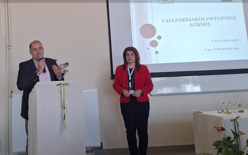 Το 1ο Γενικό Λύκειο Τρικάλων επισκέφθηκε ο Διευθυντής Δευτεροβάθμιας Εκπαίδευσης κ. Αλέξανδρος Καπανιάρης, την Παρασκευή 13 Μαρτίου 2026, στο πλαίσιο της διοργάνωσης των Διαλυκειακών Ρητορικών Αγώνων που πραγματοποιήθηκαν για ένατη συνεχή χρονιά στην Περιφερειακή Ενότητα Τρικάλων.
