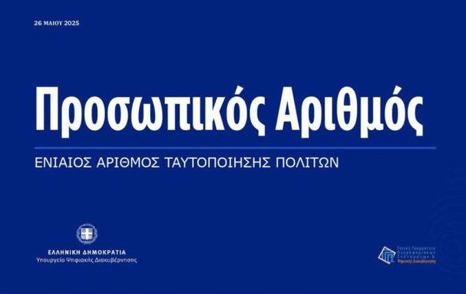 Υπενθυμίζεται ότι ο Προσωπικός Αριθμός αποτελεί μοναδικό αριθμό ταυτοποίησης του πολίτη για τις συναλλαγές του με το Δημόσιο και αποσκοπεί στη βελτίωση της εξυπηρέτησης, τόσο στις ψηφιακές όσο και στις φυσικές υπηρεσίες, μειώνοντας την ανάγκη χρήσης πολλαπλών αριθμών και διασφαλίζοντας την ακρίβεια των στοιχείων που τηρούνται στα βασικά μητρώα.
