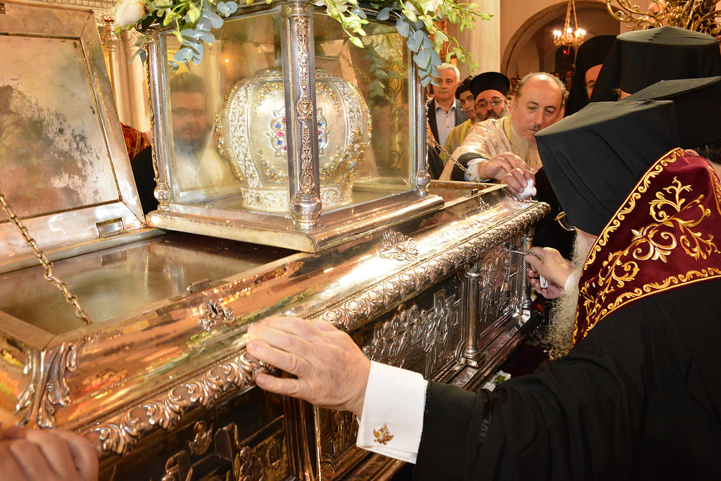 Πρώτα τελέστηκε Μέγας Αρχιερατικός Εσπερινός στον Ιερό Ναό του Αγίου Δημητρίου Θεσσαλονίκης και εν συνεχεία ακολούθησε η καθιερωμένη τελετή του Καθαγιασμού του Αγίου Μύρου του Αγίου Δημητρίου, από τον κ. Άνθιμο και τον Σεβ. Ποιμενάρχη μας κ. Χρυσόστομο.