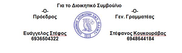 Ευελπιστούμε ότι όλα θα κυλήσουν ομαλά, έτσι ώστε  σε μεταγενέστερο χρόνο θα προγραμματίσουμε εκ νέου, την πραγματοποίηση της εκδήλωσης.