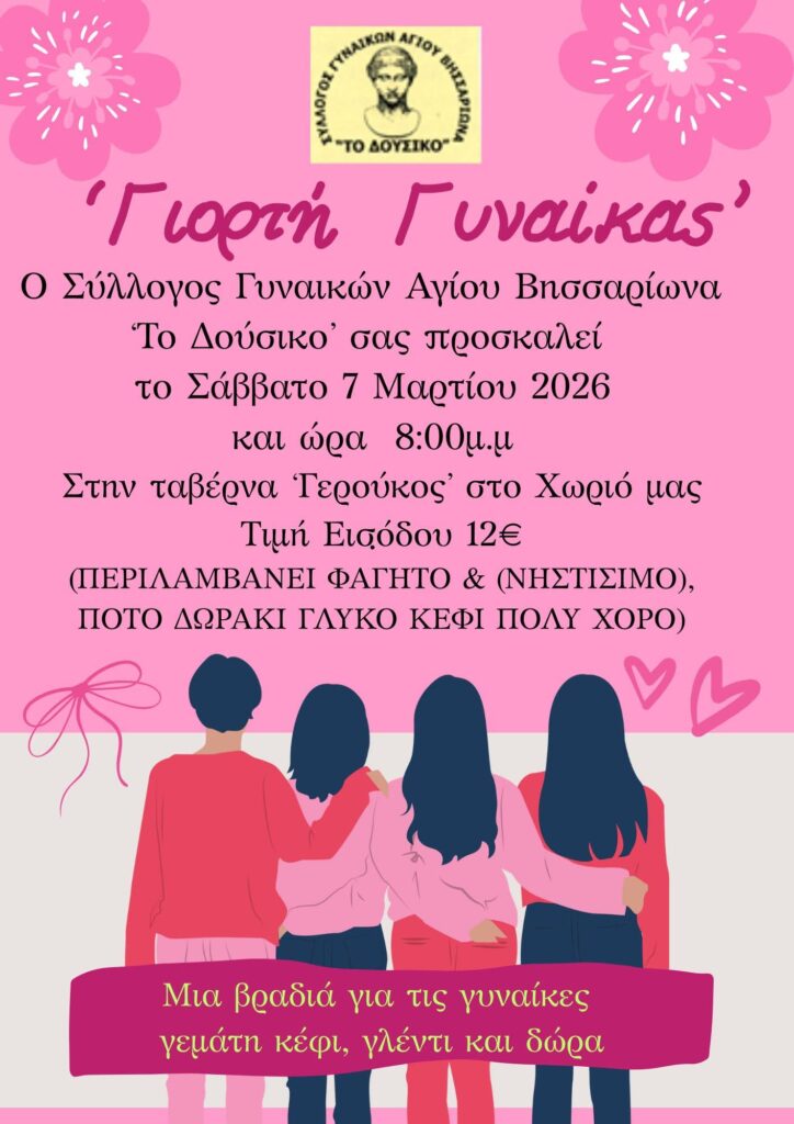 Ο Σύλλογος Γυναικών Αγ. Βησσαρίωνα, τιμά την “Γιορτή της γυναίκας”