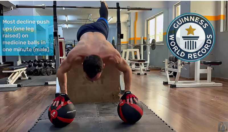Εκτέλεσε 59 κατακλινείς κάμψεις με ανύψωση του ενός ποδιού, σε ασταθείς ιατρικές μπάλες μέσα σε ένα λεπτό, σε μία από τις πιο απαιτητικές παραλλαγές push-ups παγκοσμίως.