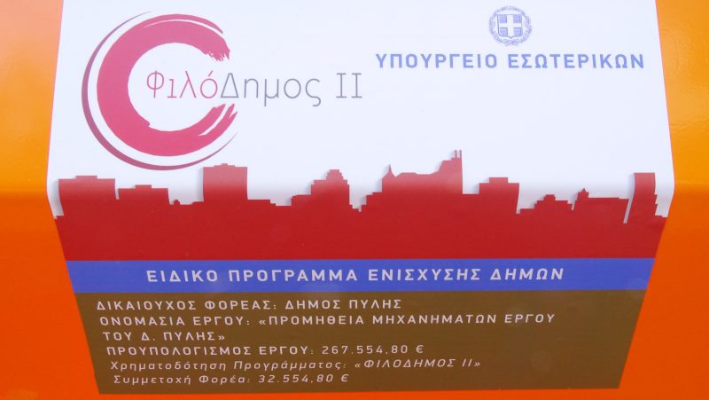 Παρελήφθη σήμερα το πρωί & στο δημοτικό Κατάστημα Δήμου Πύλης, από τον πρώην Αντιδήμαρχο Τεχνικών Έργων κ. Κ. Ούτρα, παρουσία του Δημάρχου Πύλης κ. Κ. Μαράβα, ύστερα & από την προηγούμενη παραλαβή καινούργιου JCB προ ημερών, στο πλαίσιο του προγράμματος  «ΦΙΛΟΔΗΜΟΣ», το νέο πολυμηχάνημα εκχιονισμού για την κάλυψη αναγκών του Δήμου, που θα φανεί χρήσιμο στις Υπηρεσίες, όχι μόνο της Πολιτικής Προστασίας, αλλά & άλλων τμημάτων έργων όπως της Καθαριότητας του Δήμου κλπ.