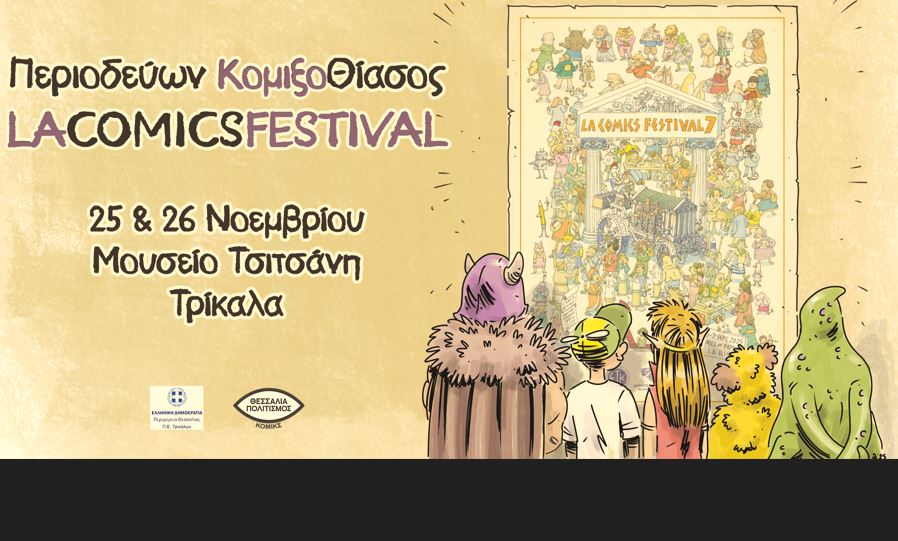 Η Π.Ε. Τρικάλων – Περιφέρεια Θεσσαλίας, η Αντιδημαρχία Πολιτισμού Δήμου Λαρισαίων και το Project Ιππόκαμπος παρουσιάζουν τον “Περιοδεύων ΚομιξοΘίασο – LACOMICSFESTIVAL”, μια διήμερη γιορτή αφιερωμένη στην τέχνη των κόμικς, στο animation και στη σύγχρονη εικονογραφική δημιουργία.
