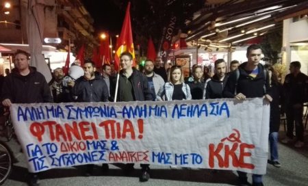 «Άλλη μια συμφωνία – Άλλη μια λεηλασία. Φτάνει πια! Με το ΚΚΕ, για το δίκιο μας, για τις σύγχρονες ανάγκες μας!».