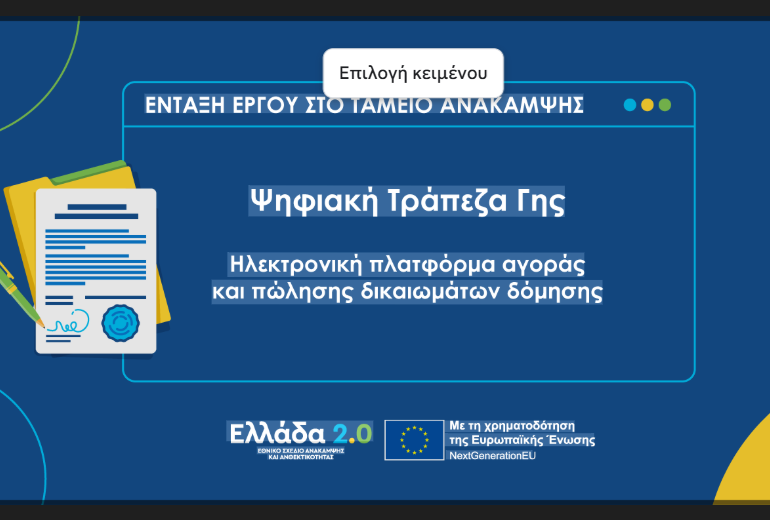 Πιλοτική λειτουργία της Ψηφιακής Τράπεζας Γης – Εκκινεί η καταχώριση τίτλων Μεταφοράς Συντελεστή Δόμησης
