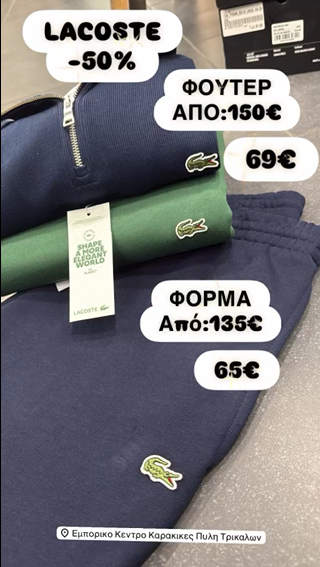 Οι εκπτώσεις έως 70% εξαφανίζουν τα νούμερα γρήγορα. Γι’ αυτό δεν έχτε παρά να επισκεφθείτε το κεντρικό μας κατάστημα στην Πύλη, καθώς η εμπειρία shopping παραμένει κορυφαία.