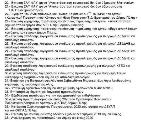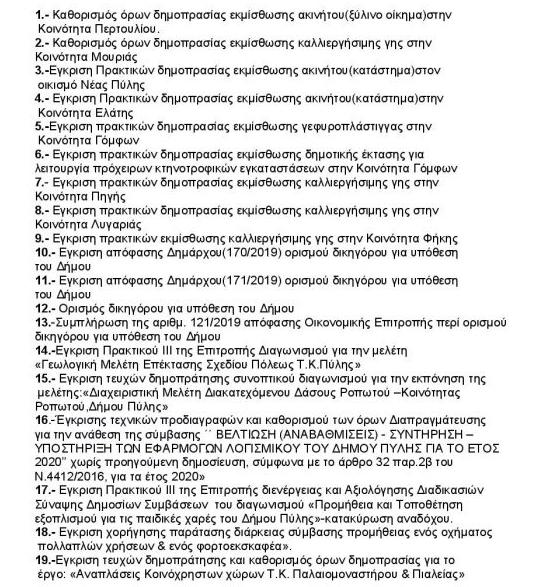 Συνεδριάζει σήμερα στις 11:οοπμ και στην συνεδριάσεων του Δ.Σ. στο δημ. Κατάστημα Πύλης η Οικονομιή Επιτροπή του Δ. Πύλης, με 38 θέματα ημερήσιας διάταξης στην ατζέντα της, τα οποία έχουν ως εξής…: