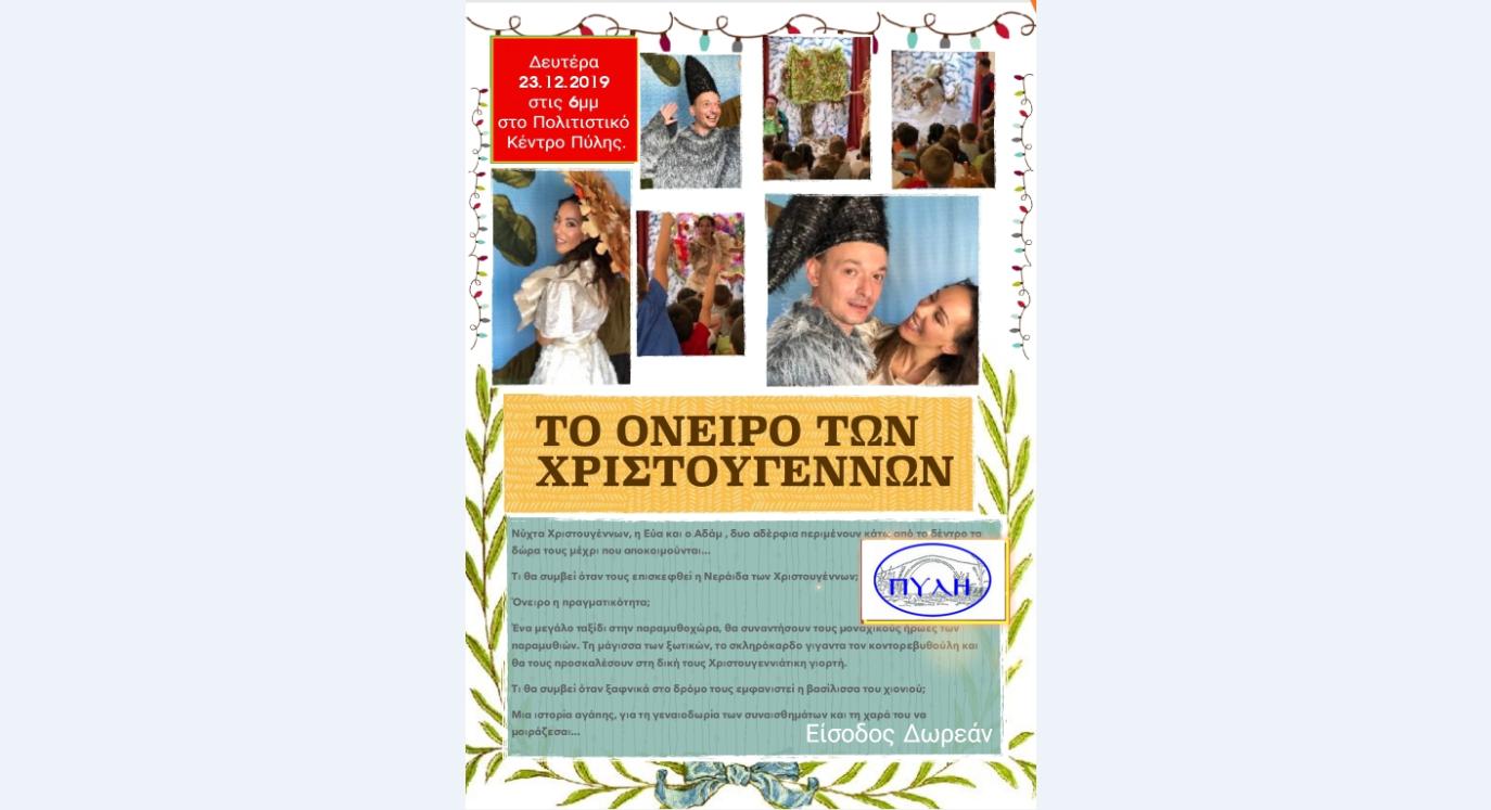 Σήμερα στο Πολιτιστικό Κέντρο Δ. Πύλης η θεατρική παράσταση “Το όνειρο των Χριστουγέννων
