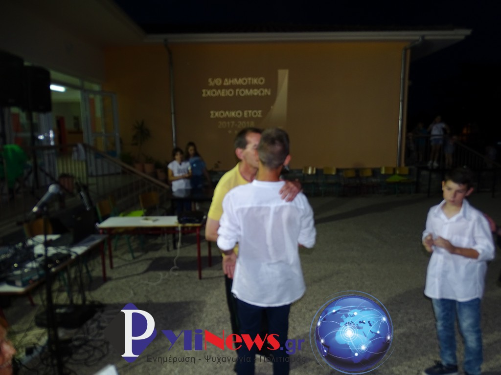 Σε κλίμα συγκίνησης & με ανάμικτα συναισθήματα, οι μαθητές της Στ’ τάξης του Δημ. Σχολείου Γόμφων, αποχαιρέτησαν το έως χθες αγαπημένο τους Σχολείο, συμμαθητές, δασκάλους & προπαντός το δάσκαλό τους κ. Δημ. Πάνο στον οποίο & αφιέρωσαν την γιορτή τους.