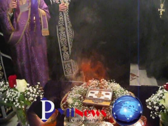 Το τίμιο λείψανο του Αγίου Εφραίμ υποδέχτηκε σήμερα, Τετάρτη 5/4, η Πόλη της Πύλης στον Ι.Ν. του Αγ. Βησσαρίωνα, παρουσία του Σεβασμιοτάτου Μητροπολίτη Τρίκκης & Σταγών κ.κ. Χρυσοστόμου & αρκετών πιστών.