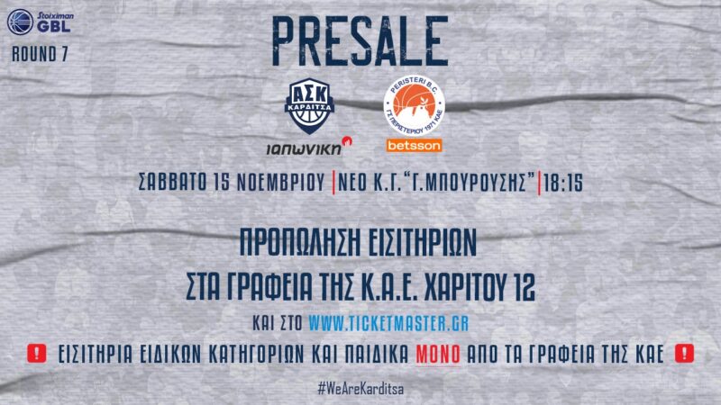 Για την πολύ σημαντική αυτή αναμέτρηση, η διαδικασία της προπώλησης βρίσκεται ήδη σε εξέλιξη και τα εισιτήρια του αγώνα είναι διαθέσιμα προς αγορά, τόσο από την ηλεκτρονική πλατφόρμα www.ticketmaster.gr, όσο και από τα γραφεία της ομάδας (στο ισόγειο της οδού Χαρίτου 12), Δευτέρα-Τετάρτη-Παρασκευή 9-1 το πρωί και 6-8 το απόγευμα, Τρίτη-Πέμπτη 9-1 το πρωί και Σάββατο 10-1 το πρωί.