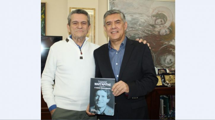 Μια απρόσμενη επίσκεψη δέχτηκε σήμερα ο Περιφερειάρχης Θεσσαλίας Κώστας Αγοραστός. Ο Θεσσαλός στην καταγωγή, από το Πετρωτό Τρικάλων, Γιώργος Μαργαρίτης, ένας από τους σημαντικότερους και αυθεντικότερους λαϊκούς τραγουδιστές τον επισκέφτηκε με αφορμή την κυκλοφορία της αυτοβιογραφίας του, που παρουσιάστηκε πρόσφατα στην Παλιά Βουλή.